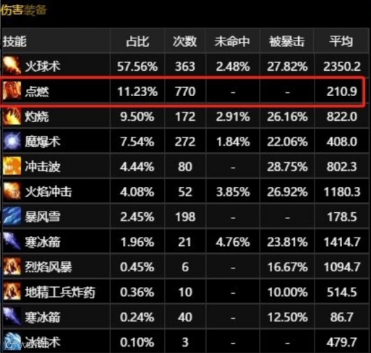 第一种毒瘤是把火法当冰法玩,无脑火球术1111。这种火法玩家有两种可能,第一种是知道另一种毒瘤玩法是纯粹为了抢点燃,自己不屑于与他们一样;第二种可能性是真的没有理解火法的玩法,没出灼烧天赋,按照冰法的思路来玩。这种玩法的结果就是把火球术搓烂,一个BOSS从头打到尾,最后都没有15%增伤。