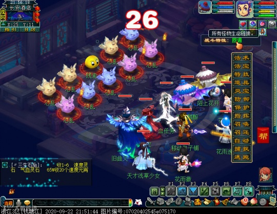 本场战斗需进行点杀,除了线索(泡泡)造型,别的怪物均为高抗物理、法术、固伤怪物,很难打动,怪物门派混沌兽(变异紫色)多为物理系,以凌波城为主,混沌兽(变异蓝色)多为物理特技怪,经常使用弱点击破进行攻击,混沌兽(非变异)为法系怪物,多使用单法进行攻击。