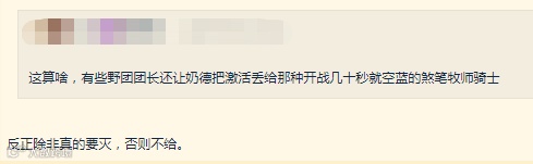 还有玩家吐槽,团长强制让猫德给奶妈激活也就算了,经常在野团里有很多自己手法不过关的奶妈,开战十几秒就把蓝刷干。还有部落的萨满向猫德要激活的,激活的回蓝量与自身回蓝速度有关,萨满靠的是五回,精神低,要了激活也回不了多少,还不如自己嗑一瓶大蓝来的实在。