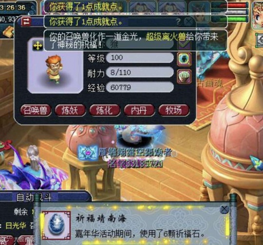 有玩家爆料,好友突然发他一张截图,瞬间就爆炸了。第6颗祈福石竟然点化出神兽,这是新出的超级离火兽,瞬间爱了!这嘉年华积分还是要刷的,有时候突然就给你一个惊喜。