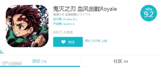 早在今年三月份,Taptap上便已经出现了关于《鬼灭之刃》IP正版手游产品《鬼灭之刃:血风剑戟Royale》的消息。