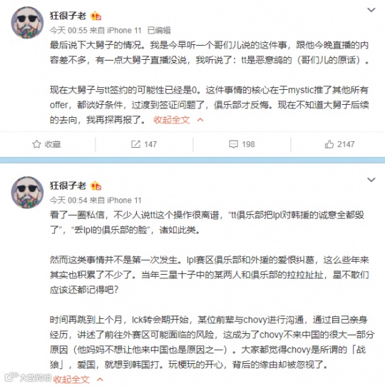 此外,老子很狂还放出了另一则重磅消息,原计划要来LPL联盟的中单选手Chovy,也是因为考虑到中国队伍的诚信问题,在某位前辈的现身说法下,最后拒绝了LPL战队的邀请。从某个角度来看,对LCK赛区而言,LPL的公信力将会因为Mystic这次的恶意毁约事件,直接跌到冰点,未来各大战队的引援工作将会愈发艰难。