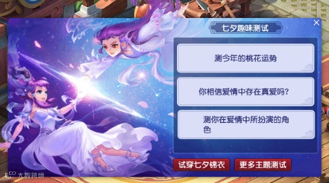 获取“七夕祝福”道具后,点击使用即可参与活动,活动道具可以给予或赠予,答题完毕后会给一个测试结果,算是挺有趣的玩法。