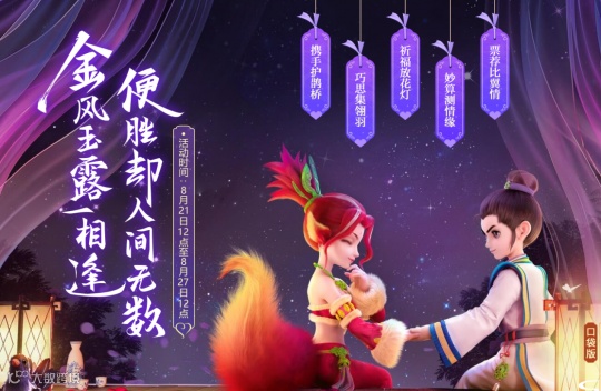 Hello大家晚上好鸭,梦幻西游2020年七夕活动已经全服放出,活动时间为21日中午12点到27日中午12点。听说合出七彩羽毛后有几率挖到滑板,这下子就给力很多了。下面,猪妹带大家看看七夕活动。