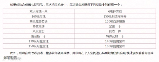 环任务有几率获得喜鹊翎毛,集多了可以合成七彩羽毛挖宝。
