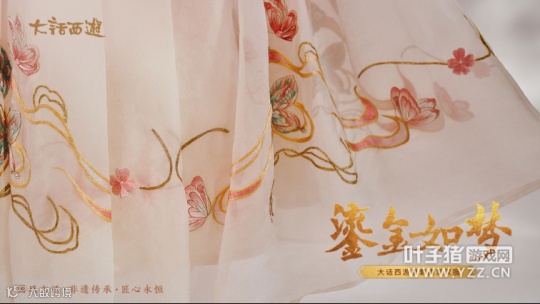 在制作方面,大话一直秉持着“网易出品必属精品”的原则,首先是邀请到了南京云锦传承人周双喜、苏绣传承人杨雪、苗族银饰传承人李正云这三位非遗传人,将大话元素和考究的中华传统文化水乳交融,联手打造出了这套汉服的形与神。