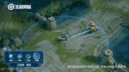 澜的二技能和兰陵王的二技能一样具有标记属性,通过攻击叠加三层印记之后也能回复生命。只不过相比于兰陵王的飞刀,澜的二技能命中率更高,这也是他打伤害的主要手段。