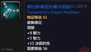 冬泉谷有一个叫做泰比斯蒂亚公主的精英怪,掉落一件冰抗项链,提供15点冰抗。冰抗属性提供的很多,但这件装备的掉落几率并不高。更难的是,由于地处偏远,可能很多玩家玩了一年的怀旧服了,都没有见到过这泰比斯蒂亚公主。