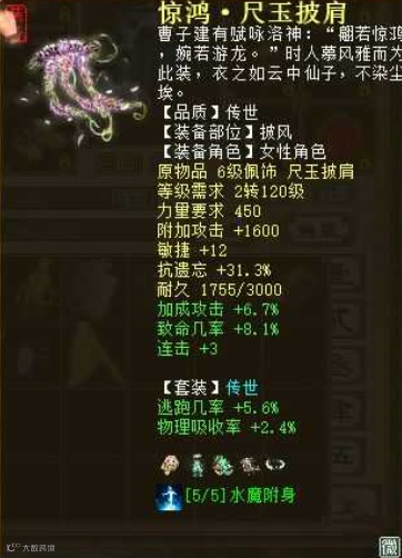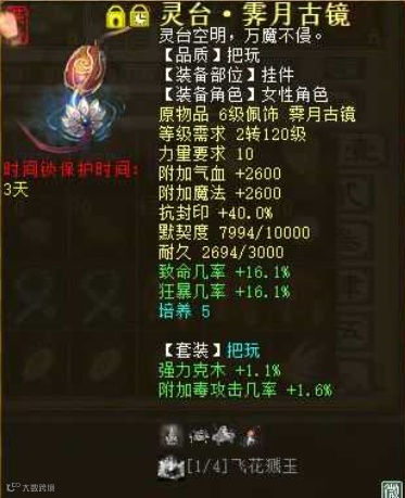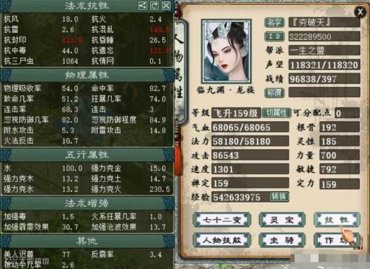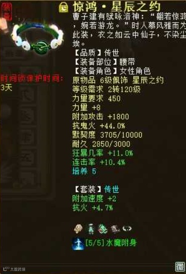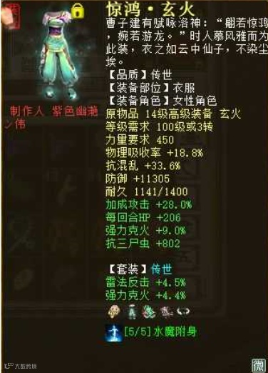 来自一位“剑仟雨”玩家的分享,他玩克火女魔很久了,最近刚转了女龙,目前配饰培养满套装洗好,最终变孔雀是+克符+攻符+帮派数据大概是11万攻 1500速度 克350 强霹雳38.7 程度98的样子。