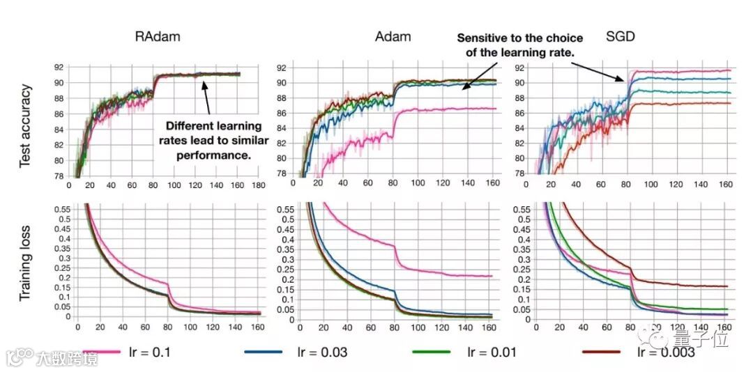 在较大学习率的情况下,RAdam效果甚至还优于SGD。