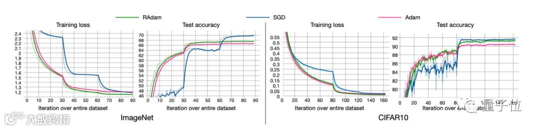 而RAdam在图像分类、语言建模,以及机器翻译等等许多任务上,都证明有效。