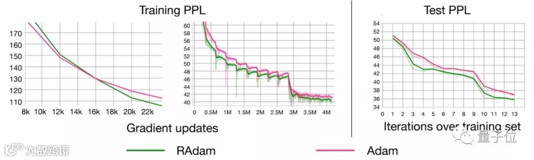 即使大道有几十亿个单词的数据集的LSTM模型,RAdam依然有比Adam更好的表现。
