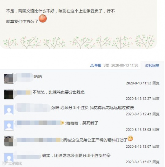 这场“别开生面”的对线彼时仍在继续,中国吧友和韩国网友的目的只为争一争谁是“五十步”,谁是“一百步”。赛场上技术要赢过对方,赛场下也一样。