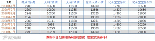 由于去年7月至12月期间的波动较大,这边从今年的1月开始记录,受今年特殊情况影响,前4个月的玩家回流比较多,号的价格也相对开始回暖,其中比较明显的是化圣级别的号,其他组别的号回暖力度稍逊化圣号。
