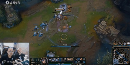 再往后节目效果就来了。面对挖掘机和小鱼人的双人包夹,孙亚龙先是躲了小鱼人大招,又利用防御塔秀了对面一波,在峡谷之巅的王者局打出了1v2反杀的操作。