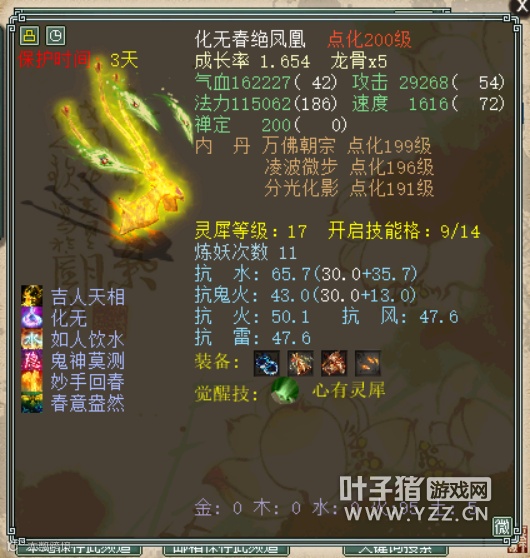 号上没有装备,但有十来只宝宝,包括两只化无凤凰,几只当头以牙,加上一只孟极一只鸾女,任务和PK基本都已经够用了: