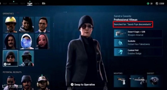这位出现在特工数据库中的NPC名为Sandra Cassidy,是一位职业杀手。离谱的地方在于她还是雅各布·弗莱的后裔。玩过《刺客信条》系列的人对于雅各布这个名字肯定不会感到陌生,毕竟这可是《刺客信条:枭雄》的主角之一。