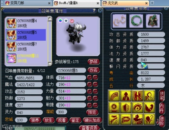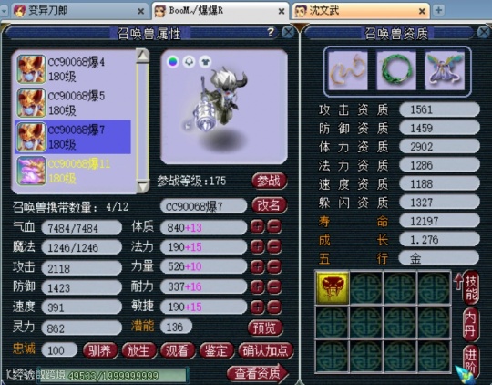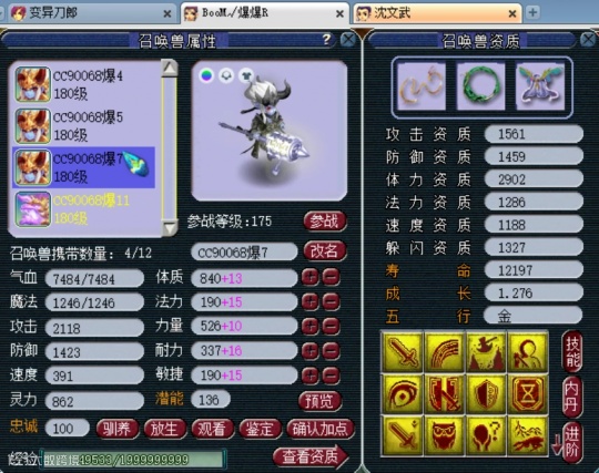 13技能翻页壁垒力劈童子,这只童子已经改书成功了,攻击资质1561,防御资质1459,成长1.276。