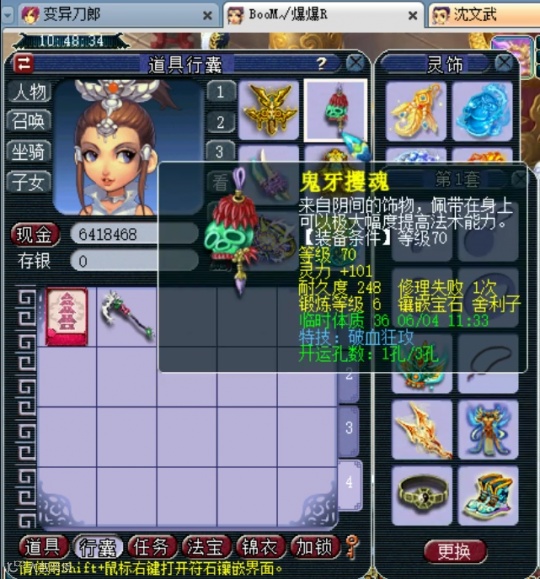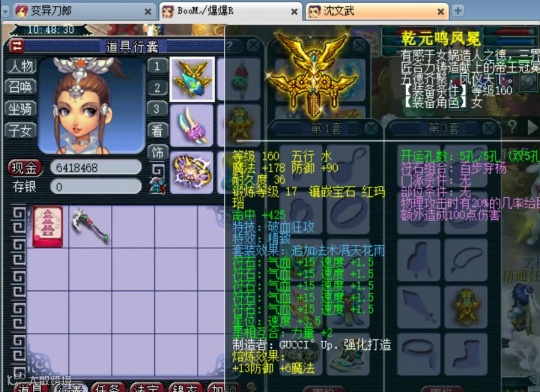 17段红玛瑙的精致破血女头,初防103,追加法术满天花雨。头盔的属性非常不错,而且还比大部分物理系头盔多一段红玛瑙,很细节。
