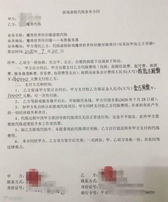 很早之前就有布鲁的玩家晒过他们服务器老板和工作室签署的协议,当时晒出的是一张1.6w元预购黑虫子的合同。如果这份合同是真的,以这份合同里的价格为例,工作室得赔偿老板3k多。有网友表示,这份合同都按了手印,赔偿20%对老板来说都算吃亏了。