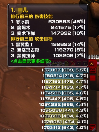 另外,在输出手法上,该玩家也进行了优化,而且这一点对DPS的提升很明显。提出了很多需要注意的细节,比如:小怪寒冰箭之间卡CD打冰锥和火冲、打老四消DeBuff时可以卡视角下暴风雪、奈法喊话马上冰箱可以让你不换披风,大法师之袍卡CD用,走喝解决续航问题等……