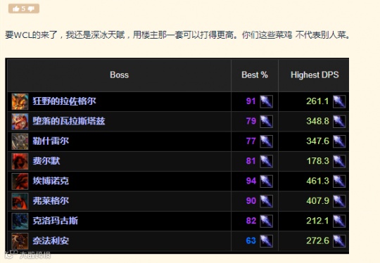 本身玩家们对食人魔法师的印象就很差,突然有人说食人魔法师也能打出DPS第一,肯定会迎来网友们的争执,冷嘲热讽的也不在少数。有嘲讽团队DPS低的,有吐槽其他队友太混了,也有拿插件说事的,好在还有一部分网友效仿这位食人魔法师的思路,并且拿出了自己的WCL数据来证明,法师认真打,在BWL真的不弱。