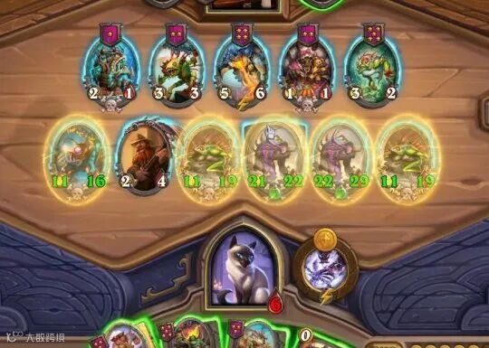 第一,瞬间爆发力强。比格沃斯先生的技能可以发现一个被淘汰玩家的随从,并且保留随从的所有强化效果,也就是说它只用一个技能就可以白嫖对手多个回合的积累。如果一个回合当中有多个玩家被淘汰,那么猫先生一个回合就可以瞬间收入三个强力随从。这样的爆发能力,对于场面阵容的提升绝无仅有。