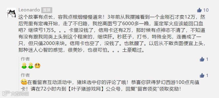 文末留言有机会抽中100点卡!