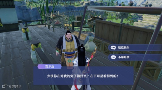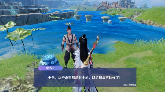当我气不过想要攻击水牛的时候,竟然还有路过的NPC来教训我,“这些禽畜都是有主的,以后切勿再这样了”,于是羞愧难当的我只好捂脸而逃...