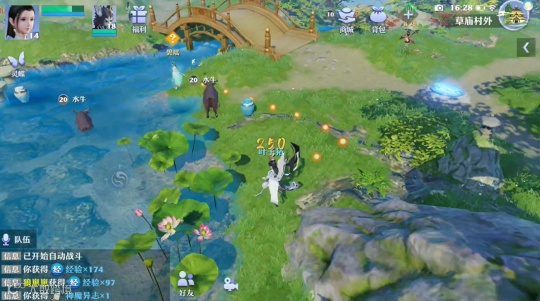 在主线以外,每个场景都可以触发支线任务,这也令整个《梦幻新诛仙》的游戏世界更加完整,每个NPC都活生生地存在于这个如梦似幻的世界当中,而我们更像是误入仙境的过客,这一点,在被河边的水牛踢了一脚之后,我更能深切体会到。