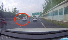 就在白色轿车变道时,从它左侧驶来的黑色越野车,避让不及,撞上白色轿车。高速上,车速快撞击力度较大,被撞后白色轿车弹回最左侧车道,又撞击到原车道内行驶的第三辆车,所幸没有人员伤亡