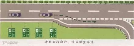 高速公路临近匝道时,至少在上游500米、1公里、2公里甚至更远的距离会设置标示牌。需要进入匝道的车辆请提前向右变更车道,控制合理车速。