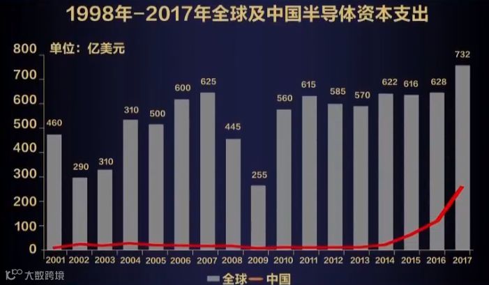 清华大学魏少军教授公布过一张图,图中可以看出2014年以来,中国的半导体资本支出开始大增,如果去掉中国的那部分,全球其他地区会出现下降。