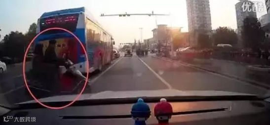 某些人不守规矩横穿马路,加上公交车体积较大,侧后方来车根本看不到。