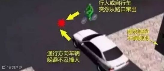 通常出现在繁忙的路口。车辆在等待绿灯通行时,位于路旁的行人或自行车容易被车辆遮挡。如果行人或自行车闯红灯通过路口,通行方向的车辆可能会来不及刹车,导致撞人事故的发生。