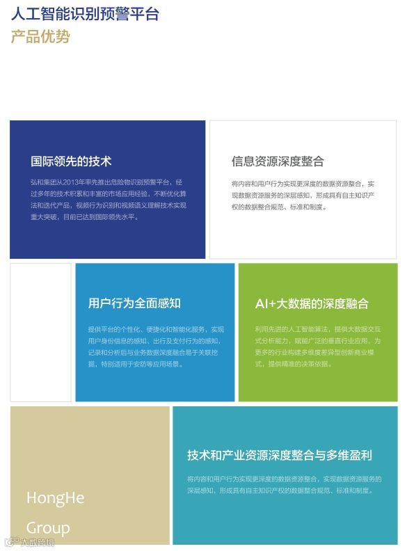 目前四川弘和集团顺应市场需要推出弘和智能识别预警平台,有效预防暴力事件发生、认为灾害发生、案件取证、即时响应。