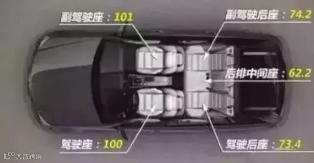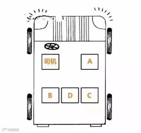危险系数从高到底依次为:副驾驶座>驾驶座>副驾驶后座>驾驶后座>后排中间座