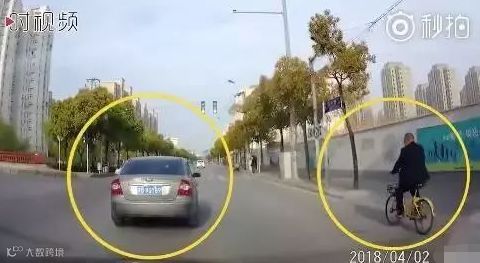 这个网友的行车记录仪显示,前方的一辆机动车在道路较为空旷的情况下一直低速行驶,并且很靠近中心线。而非机动车道上有一辆自行车一直与该车保持平行骑行,两者之间保留较大空间。