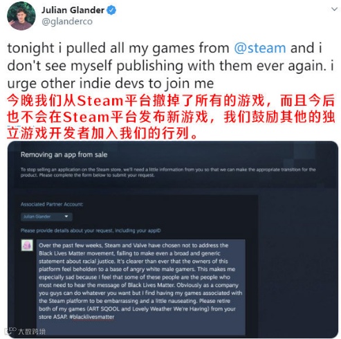 之前V社没有对「BLM运动」进行回应还不至于被大家集火,但这起事件的发生直接将V社的行为定性为「不支持就等于反对」,靠用户吃饭的V社无异于被扔在炭火上面烤。