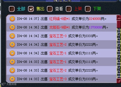 1、游戏中,10级及以上的宝石,因为单价高,受众面积小,不宜摆摊销售,需要直接丢藏宝阁。