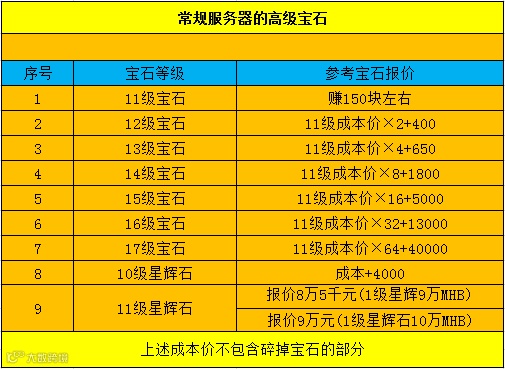 小编做了个高级宝石报价表,大家根据区内宝石收购价做参考。