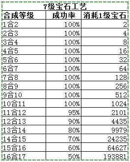 在宝石工艺满级的情况下,1-11级的宝石(即10级合11级成功率100%),1-8级的星辉石(即7级合8级成功率100%)是不会碎的。