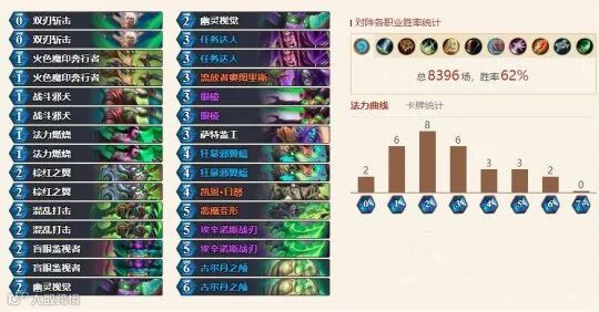 我们可以看到,在这套卡组当中,相对于上线初期的恶魔猎手卡组做出了很多改动。最直观的改动,就是放弃了卡组当中节奏偏慢的愤怒女祭司和安塔恩,以及可以吸血的奥达奇战刃。在去掉了一些高费牌之后,这套节奏瞎卡组进行了非常明显的提速,在中前期拥有更强的战斗力。