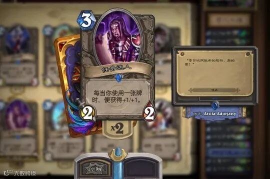 在放弃了后期诸多的大哥之后,恶魔猎手前期如何hold住场面呢?答案非常简单——任务达人。伊利丹具有非常强的过牌能力,两张任务达人会给对手带来非常大的解场压力。一旦对手没有解掉任务达人,那么这张看似不起眼的卡牌就会成为对手的梦魇。