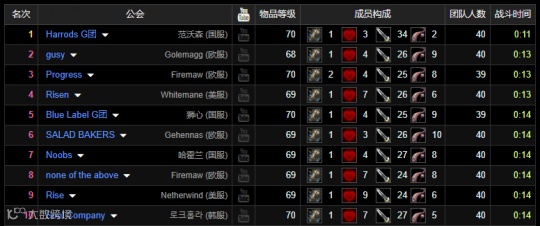 国服团队这次把击杀时间刷新到了11秒,算得上是一次巨大提升了,目前能够达到11秒的也仅此一家。他们的团队配置了23个狂暴战、9个盗贼和2个猫德,全是近战DPS,此外还有工具人术士猎人各1人,1个坦克,3个奶骑。秒伤超过3000的狂暴战就有5个,最高的高达3600+。