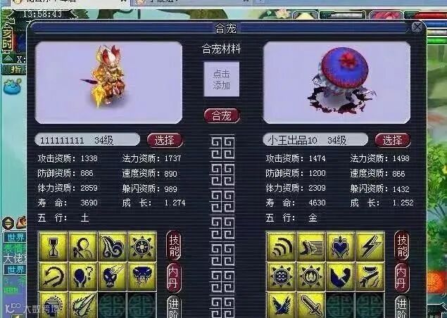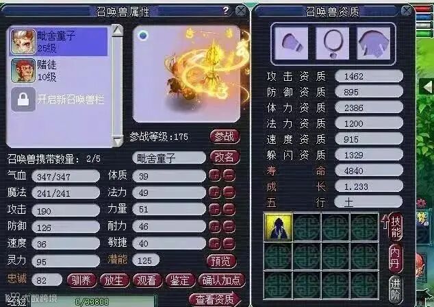 这一组还没上一组效果好,只合出了12技能的童子,资质也拉到不行,要把这只童子的资质养起来可能要花10年。