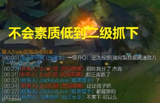 在游戏中JKL使用VN走下,而锅老师在对面使用艾克打野。刚进入游戏锅老师就公屏问候道:“杰克,别吃我分了,都三连跪了,让让孩子吧。”阿水看到后只是简单地回复道:“都挺惨的”。