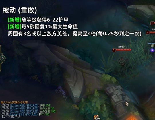 重做后猴子的被动为获得6到23点护甲,且获得每5秒1%最大生命值的生命值回复,这项加成在周围有3名或更多的敌方英雄时,数值会提高4倍。与原版猴子相似功能的被动,但由于新增生命回复后,导致猴子的赖线能力增强,在团战的生存率也小幅提升了。
