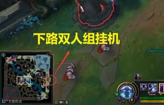前期姿态和香锅只能压制对方的发育而不能其击杀。但就在两人补兵发育的时候,己方下路就时时传出被对方击杀的消息。到了8分钟的时候,己方下路就已经阵亡高达八次,紧接着下路二人就直接站到二塔旁的草丛里挂机。