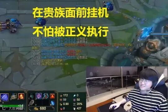 姿态在这局峡谷之巅排位中,使用劫中单对线小鱼人,而锅老师由于系统分配原因只好使用剑魔上单对线新英雄腕豪。